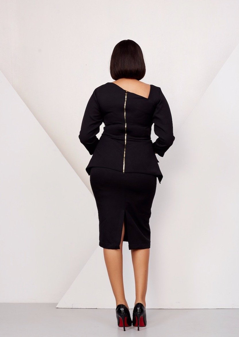 The dress that adds that extra pep to your step. This power look features a structured peplum that’s perfect for those hormonal bloat days or days you had a little too much at brunch(Don’t we all)