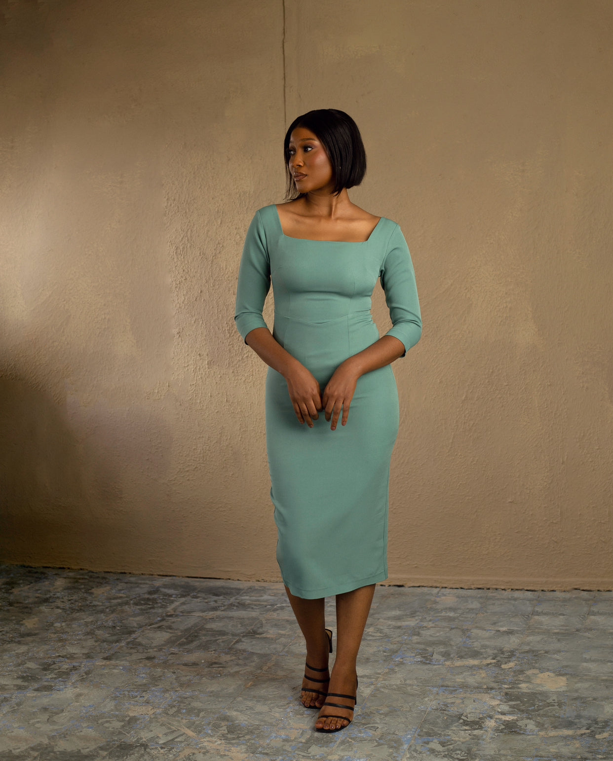 Essential Square Neck Straight Sleeved Midi Dress Mint