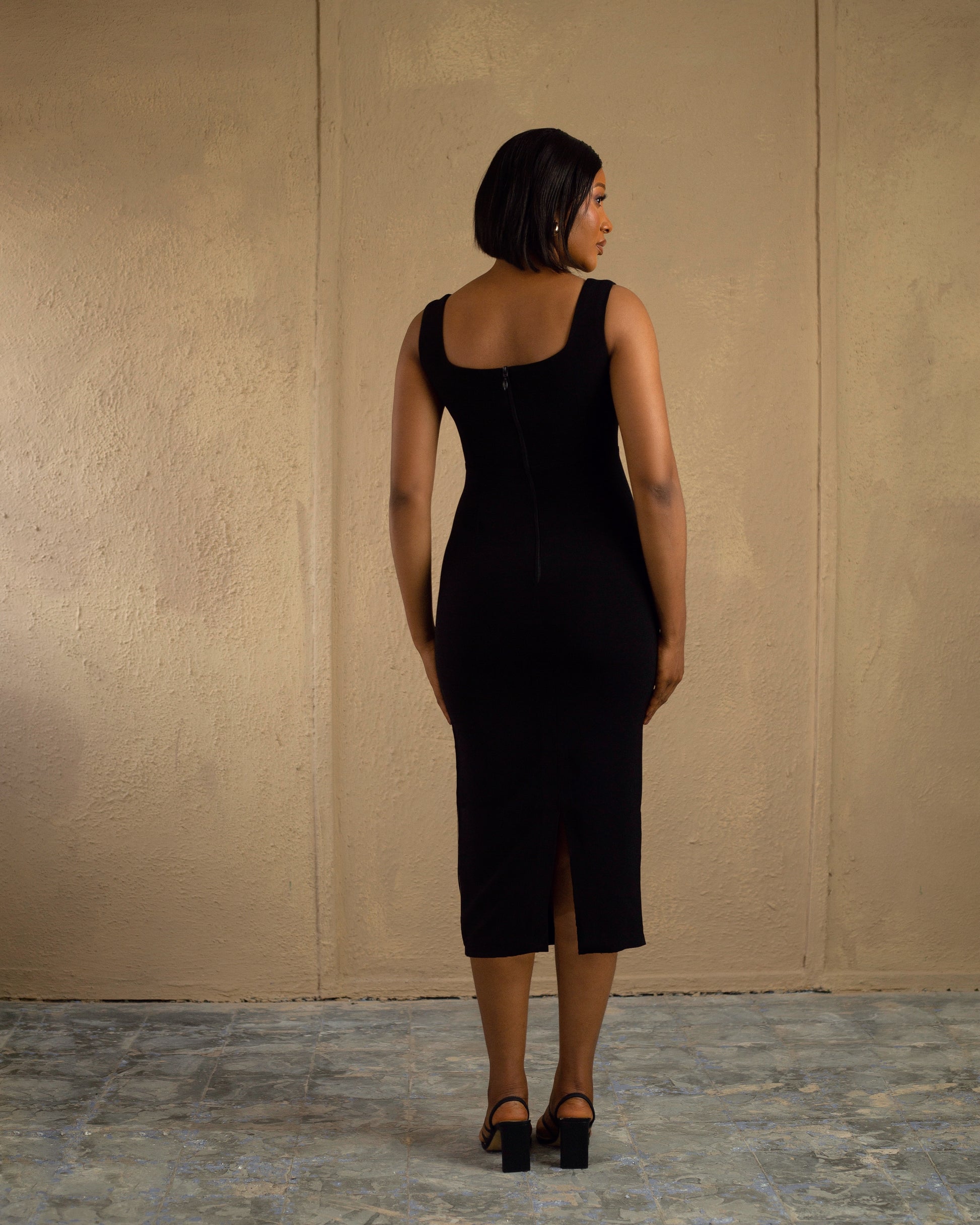 Essential Square Neck Straight Sleeveless Midi Dress Black