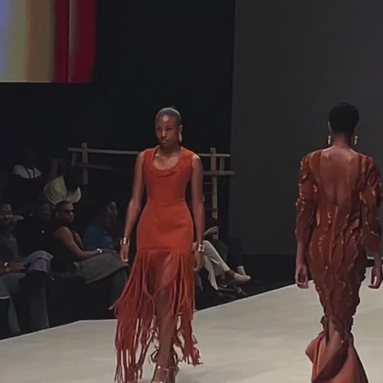 The Tabata Dress represents a masterful fusion of heritage and contemporary design, crafted from authentic aso oke fabric that celebrates cultural richness. Hand-selected fringe detailing adds movement and artisanal character to this structured silhouette, creating a garment that honors tradition while embracing modern sensibilities. Perfect for those seeking to make a culturally conscious statement without compromising on sophisticated tailoring and refined elegance.